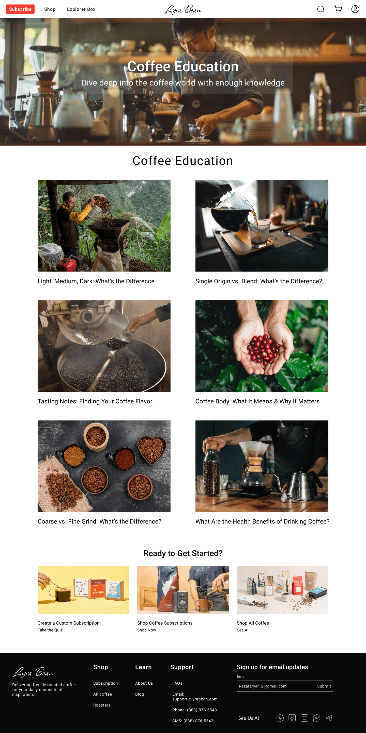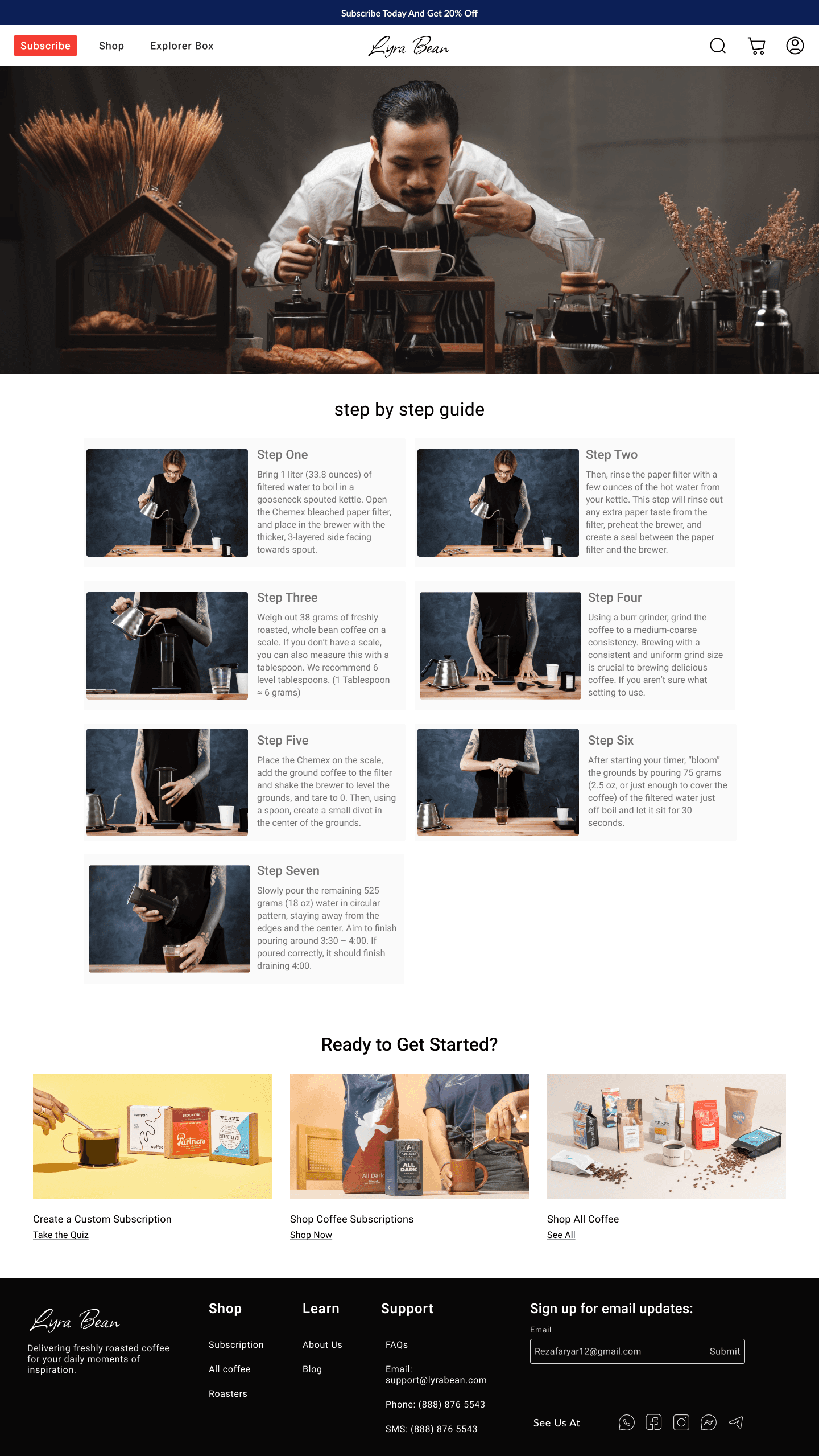 The coffee subscription website is designed to enhance the coffee discovery experience by addressing key user pain points identified through UX research.
