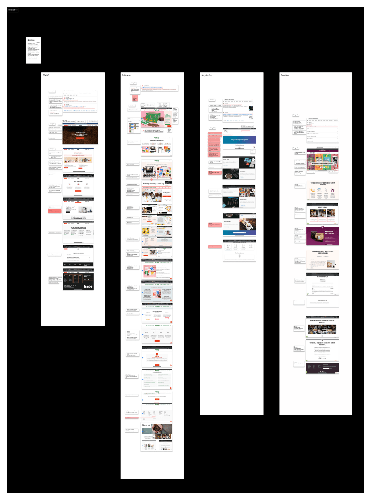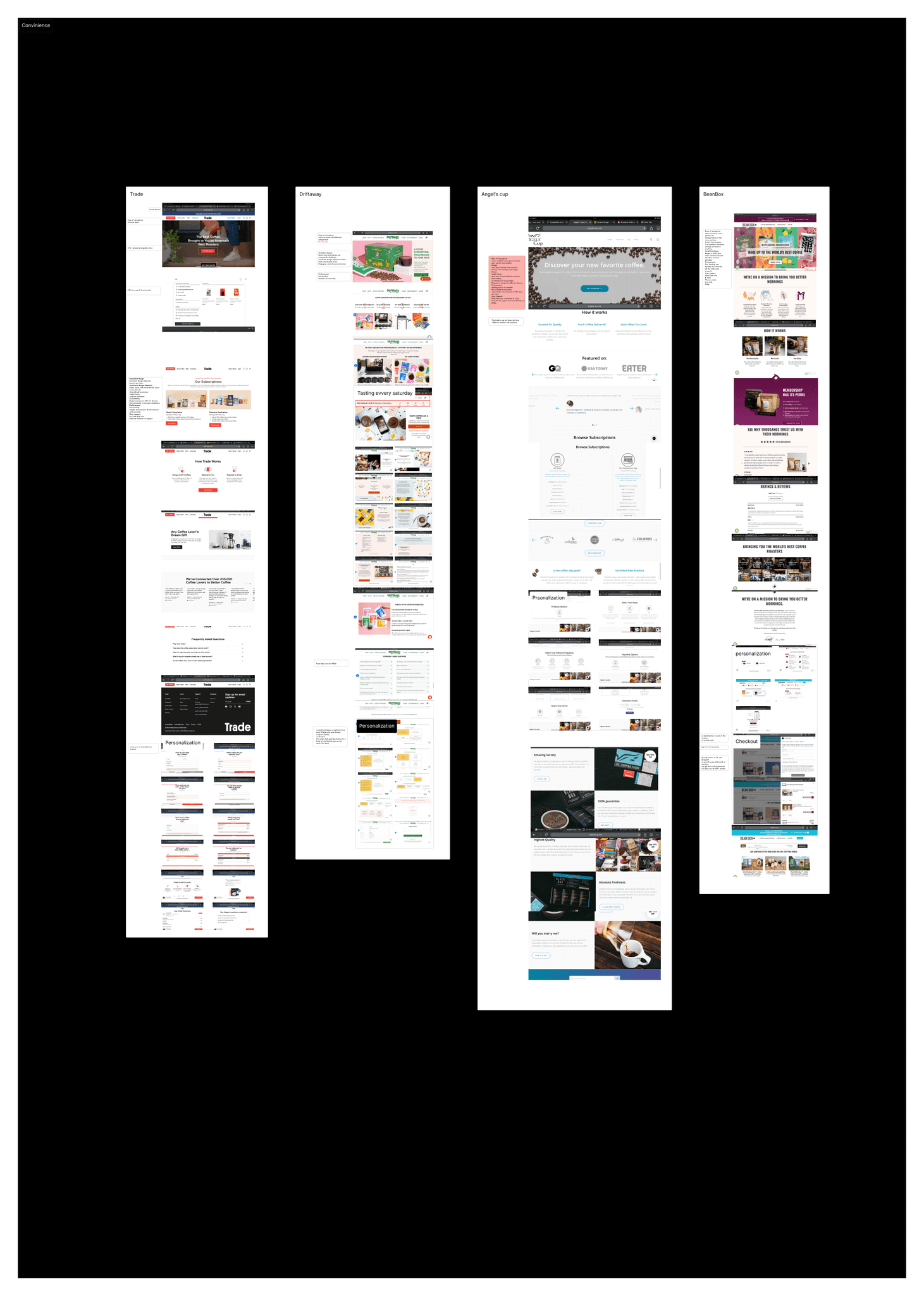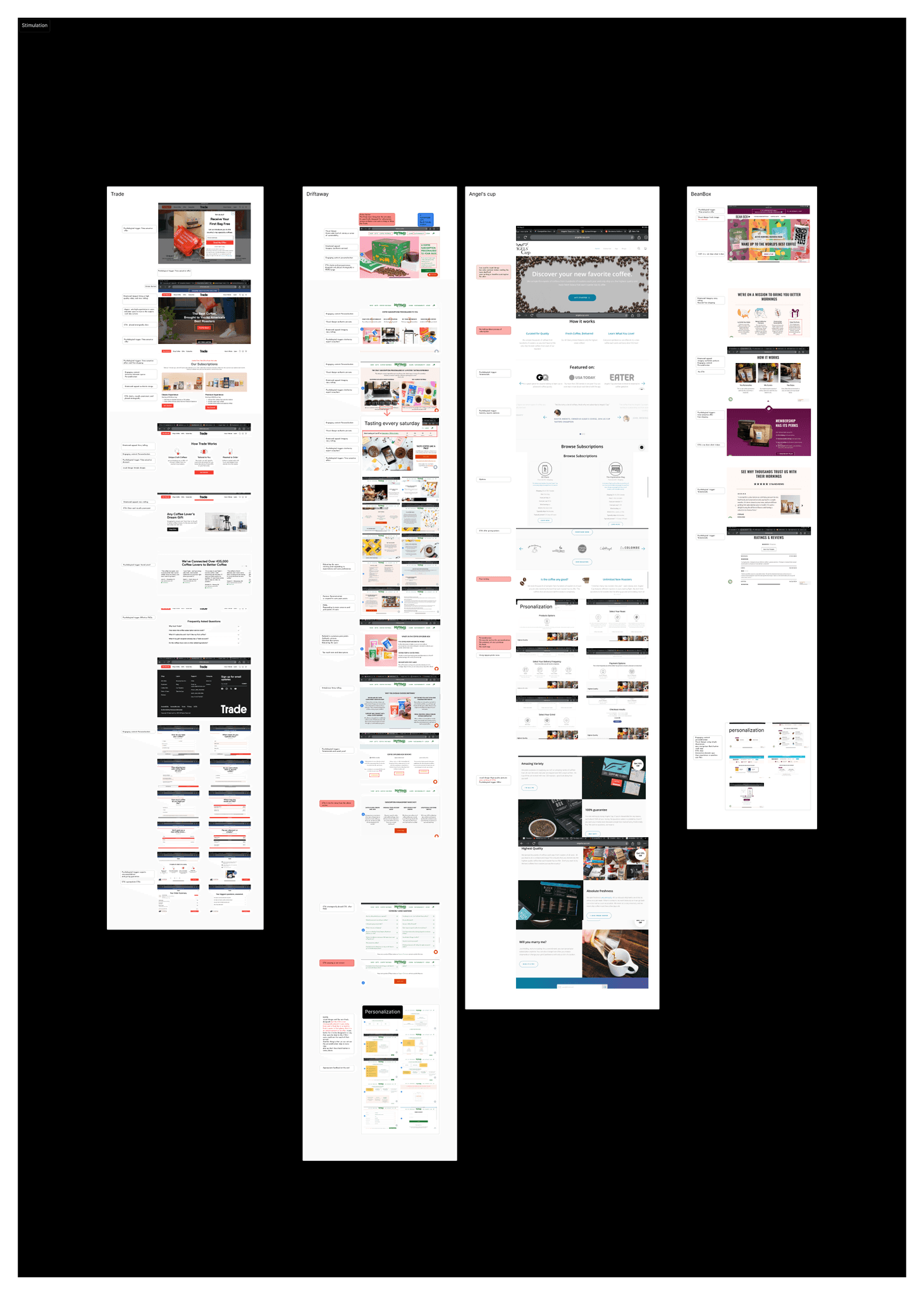 After identifying insights into what a coffee subscription service should offer and understanding user pain points, I conducted a competitor analysis of three leading subscription services and one weaker competitor. The goal was to identify areas where mistakes are commonly made and uncover opportunities for improvement.