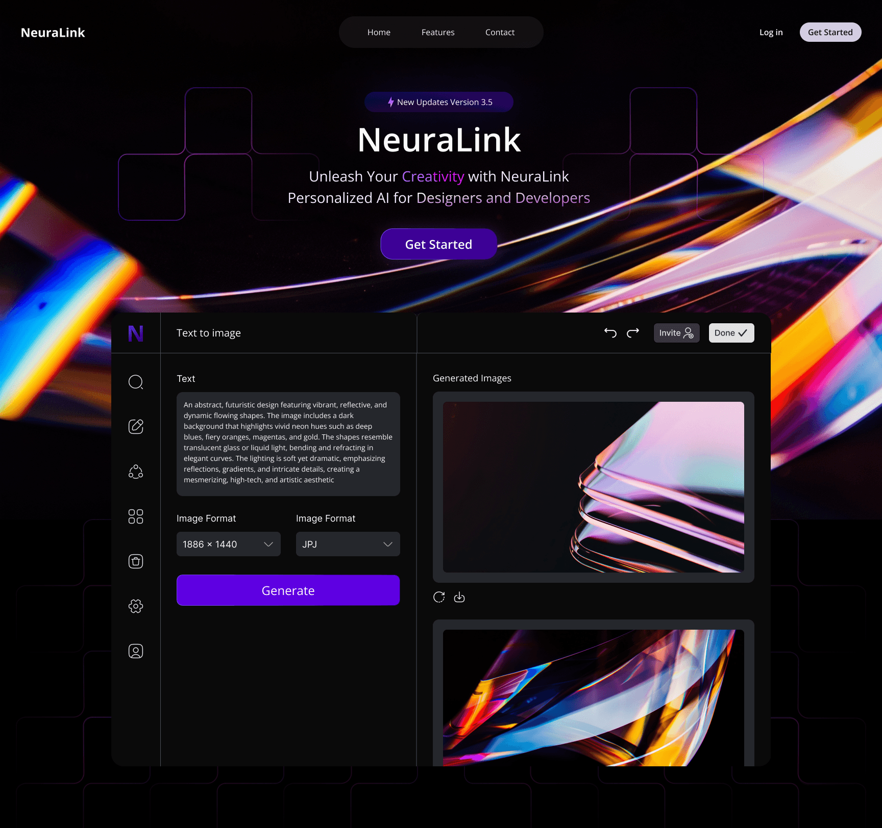 “NeuraLink is a personalized AI tool designed to empower designers and developers by providing advanced AI-driven features such as text-to-image generation, streamlined workflows, and creative assistance.”